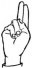 На ћирилици написано ИГЊАТИЈЕ ПАЉЕВШТИЦА састоји се из 18 слова [?]. Исписано ћириличном једноручном азбуком за глувонеме: